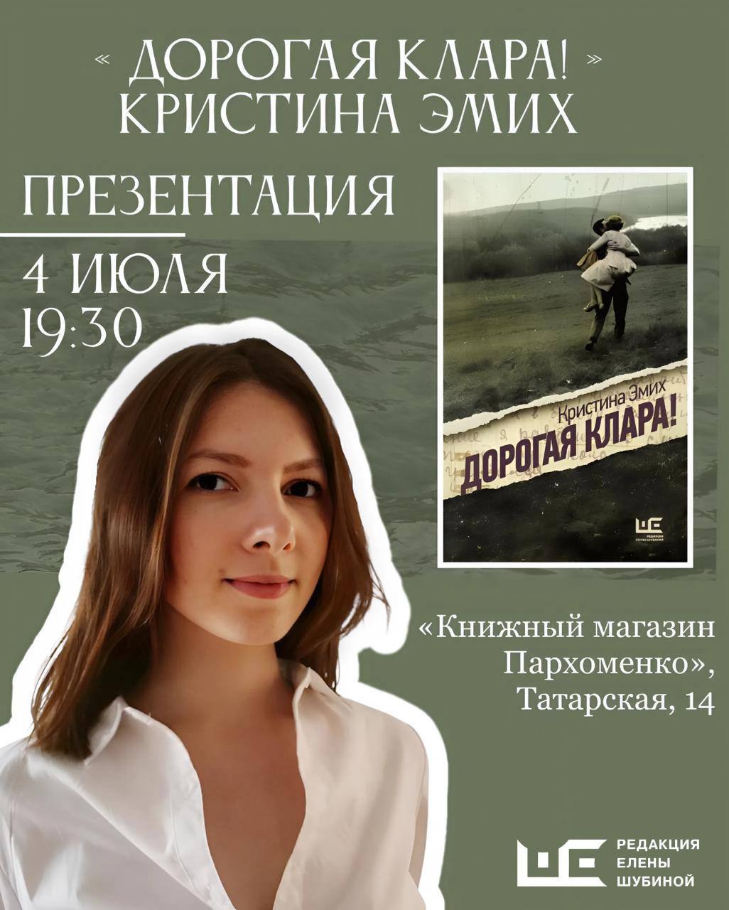 4 июля в 19:30 в «Книжном магазине Пархоменко» Кристина Эмих расскажет о своей новой книге «Дорогая Клара!».